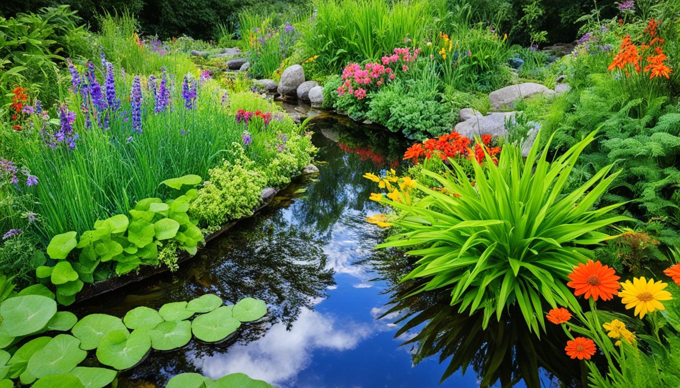 Starting a rain garden means picking the right plants. It’s key to choose native species that fit your local climate and soil. These plants do well in the wet and dry cycles of a rain garden. They also help local wildlife, like pollinators.